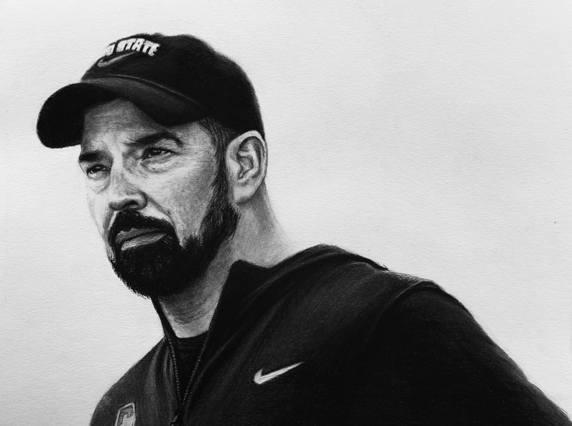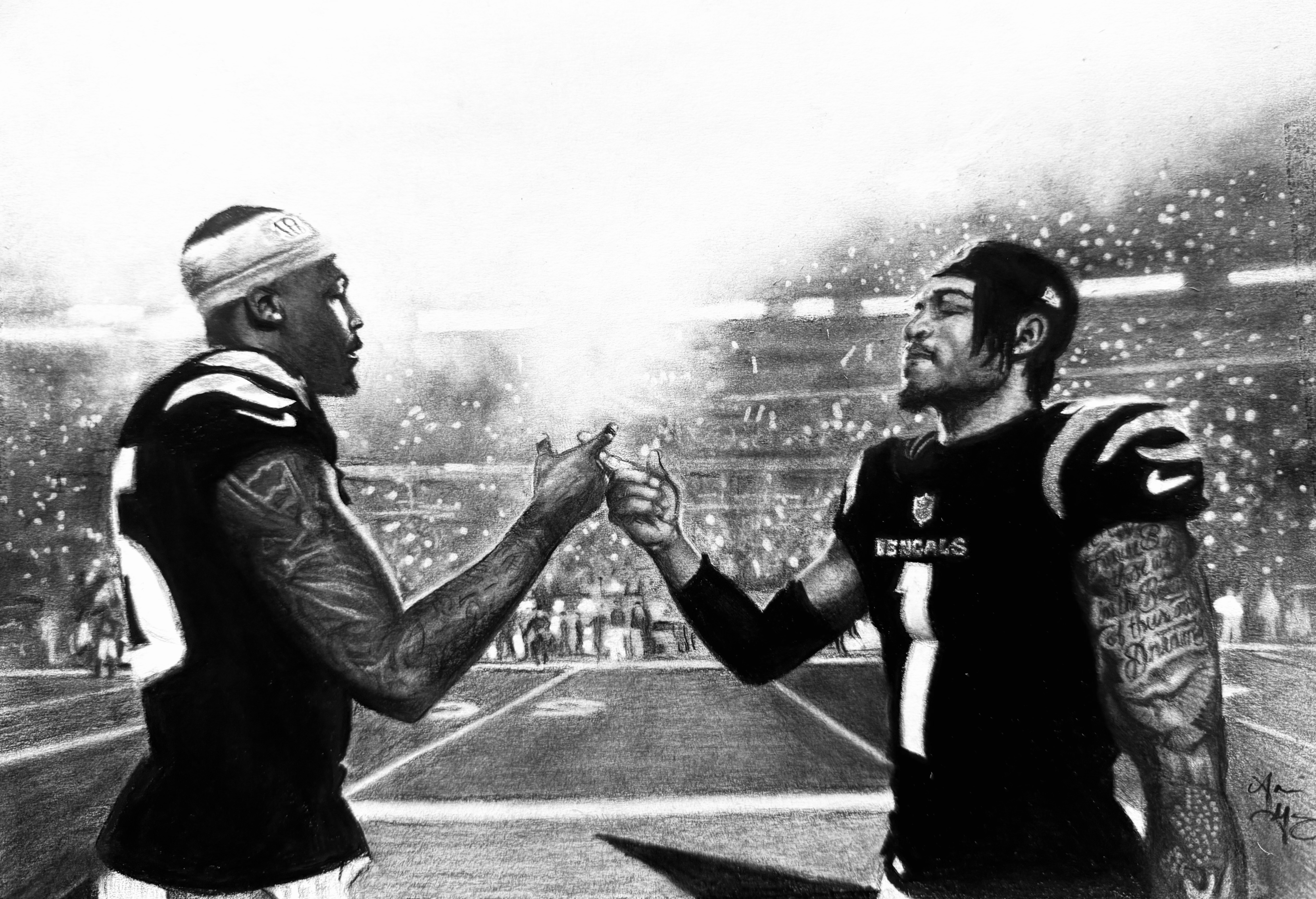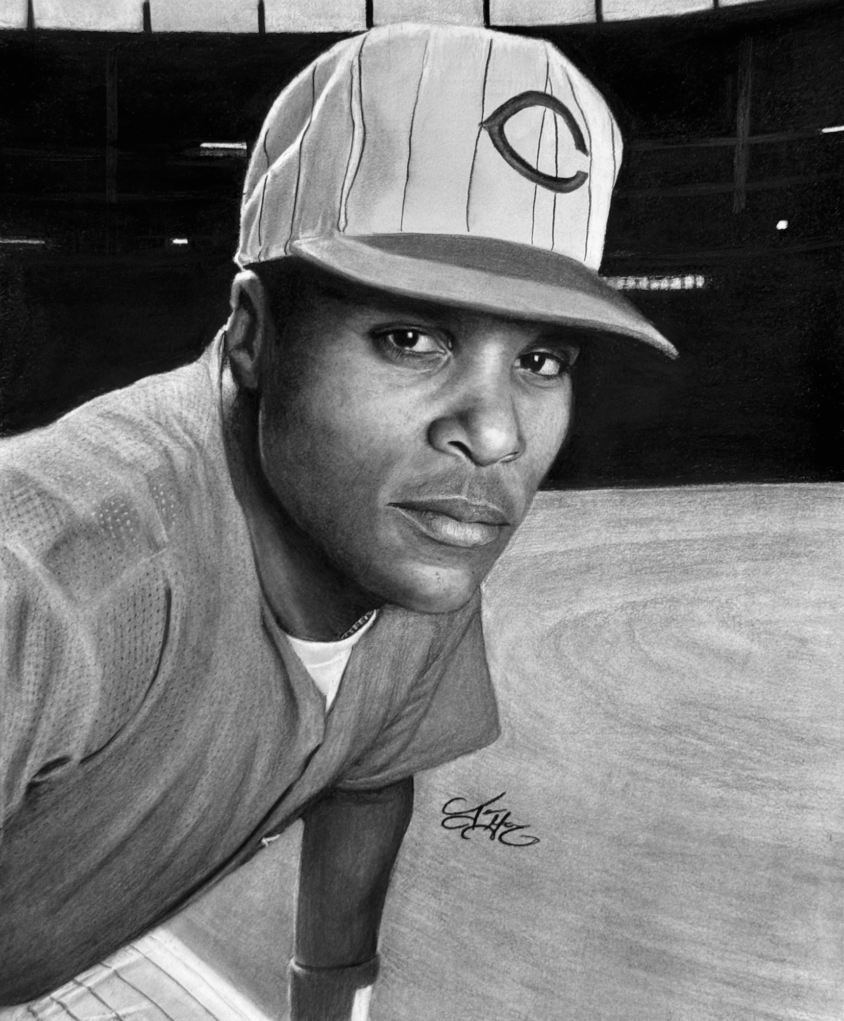 For those that don’t know me, I’m a 40 year old, self-taught Cincinnati based artist who is probably best known for drawing photorealistic portraits of personal sports, comedy and entertainment icons. I primarily use charcoal and graphite, but occasionally experiment with colored pencils, markers, ink and pastels as well.